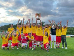 Festspielmannschaft / Grandioser Pokalsieger 2023 / Packender Pokalfight / Sponsoren mit 4:3 bezwungen / Spektakulärer Fußballnachmittag auf dem Platz von Hanau ’93 / Urkunden zum Jubiläum / Superstimmung mit der Guggemusik aus Ingelheim “DIE ROTWOIGEISTER“ / Verabschiedung von Helmut Potthoff / Große Aftershowparty auf dem Gelände der ’93er